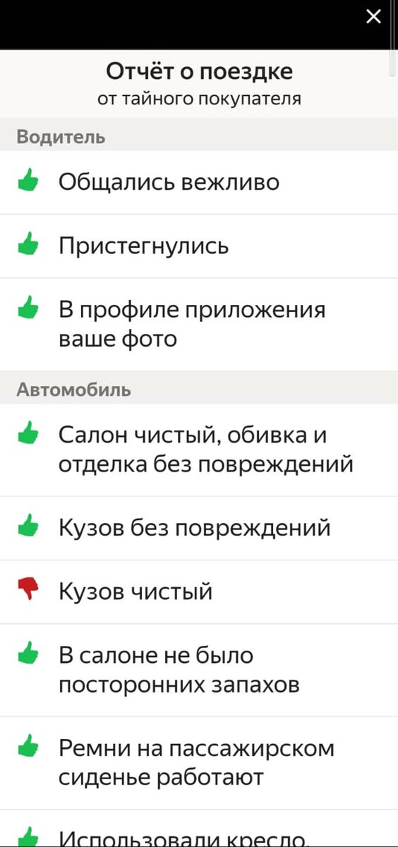 Погнали! Меня лично пока Бог миловал от поездок с тайными покупателями, а вот одному из подписчиков канала "Вежливый Борт" повезло меньше и он прислал мне все скриншоты этой процедуры. Итак, тариф "ДЕТСКИЙ" подразумевает не просто наличие детского кресла в салоне автомобиля, но и массу дополнительных нюансов и правил, которых водитель обязан придерживаться, если хочет продолжать работу в данном тарифе. Для контроля за выполнением своих требований Яндекс и нанимает на работу тайных покупателей, которые под видом обычных пассажиров совершают поездки, в ходе которых заполняют стандартный чек-лист, любезно предоставленный им Яндексом.