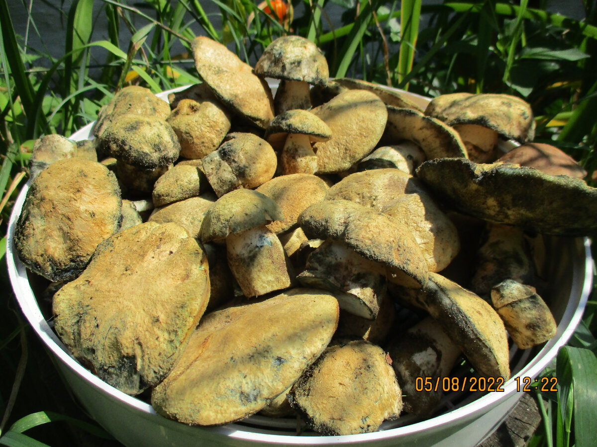 Не верите? Еще как! И заставили снова строить планы-прогнозы . Уж не мазохистка ли я часом? Не...Все проще и радостнее. Бывалые грибники улыбаются, а начинающим есть великий смысл прочитать заметку до конца. ИТАК...Синяк-это просторечное название гиропоруса синещего. Абсолютно съедобного, обладающего особым ореховым вкусом и относящегося к грибам первой категории.По сути - это родной брат и белого, и подосиновика. По моему разумению...Почему? Вот в этом и суть интриги. Название гриб получил из-за своей особенности. Она в том, что моментально(в течение секунд!) при малейшем касании до него меняет свой песочный цвет на ярко-синий, чернильно-аквамариновый. Этим синяк очень напоминает подосиновик, разве только в более выраженной степени. Ведь синеет у него не только срез от ножки, а все плодовое тело. Это очень похоже на волшебство...Гриб неожиданно превращается в расписного индейца, и беспощадно - причудливый рисунок при этом появляется у вас на глазах... Именно из-за этой особ