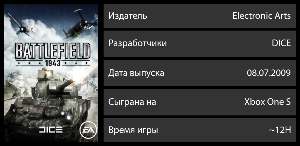 Battlefield 1943 - восьмая по счету игра в серии Battlefield, вышедшая после успешного BF Bad Company и плохо воспринятой BF Heroes. Если Heroes пошла по совершенно другому пути, по которому ранее Battlefield не шел, то с Bad Company явно можно было взять пару полезных плюшек, чтобы 1943 стал примером для подражания для будущих проектов.