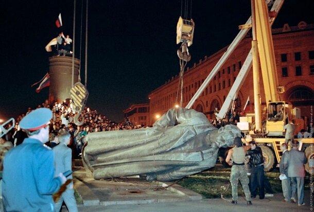 В один из дней второй половины августа 1991 года на площади Дзержинского собрался многотысячный митинг. Толпы участников подступили к дверям здания КГБ. Звучали призывы вытряхнуть чекистов из их кабинетов. Там в это время находилось несколько тысяч вооруженных и хорошо подготовленных сотрудников. Никто из них не осмелился выйти на защиту. Им повезло. Митингующие ограничились сносом памятника Дзержинскому и его памятной доски. В те дни высказывались разные мнения относительно будущности Комитета госбезопасности. Были предложения вообще ликвидировать это ведомство и создать новую службу на новых принципах. К тому же и союзные республики требовали поделить комитет для создания своих силовых структур. На должность председателя КГБ, вместо отправлен6ного в Лефортово Крючкова, назначили партийного работника Вадима Бакатина. Он до этого был министром внутренних дел. Появление на Лубянке популярного в ту пору Бакатина спасло комитет от полного разгрома. Все же его преобразования Бакатин провел