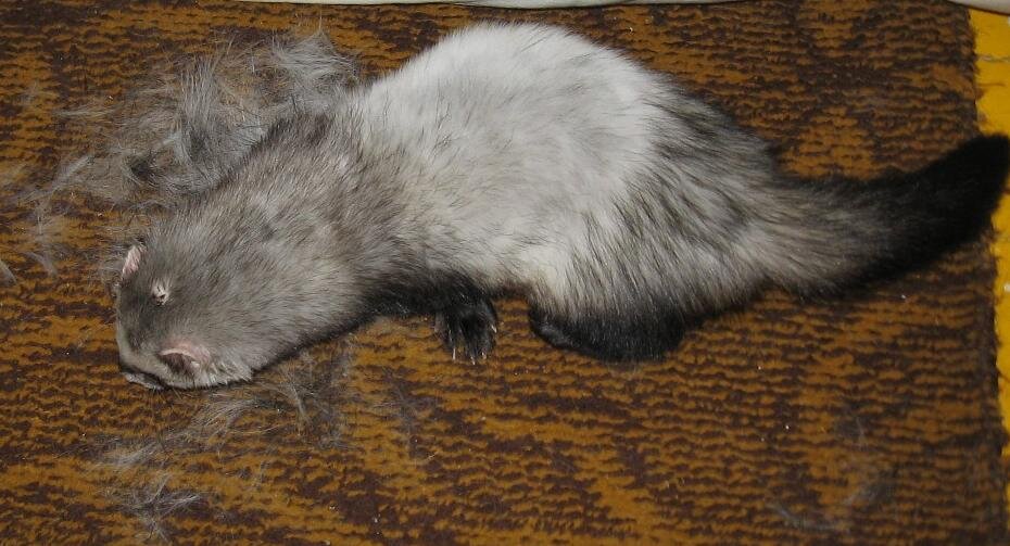 Взяли хорька на руки и на одежде после него осталась шерсть?! А при уборке в домике и на тряпках обнаружили целые клочки? Да, у хорька началась линька. Как у кошечек и у собачек у хорьков два раза в год проходит линька. Как правило проходит она в начале лета и перед зимой. В этот период хорёчка нужно обязательно либо вычесывать, либо выщипывать. Игнорирование этого периода может привести к закупорке кишечника шерстью. У хорьков во время линьки может синеть кожа. Как же правильно это делать? Во время таких процедур что бы не травмировать хорька его можно отвлекать лакомством, например: любимой пастой. Берёте хорька, ложите на колени, одной рукой даёте лакомства, другой вычесываете/выщипываете. В некоторых случаях хорька приходится держать за шкирку. Лучше всего делать это в течении нескольких дней чтобы не замучать любимца. Так же в период линьки хорьку можно давать пасту для вывода шерсти из организма (подойдет кошачья) и витаминки с таурином. Надеюсь статья была для вас полезна. Буд