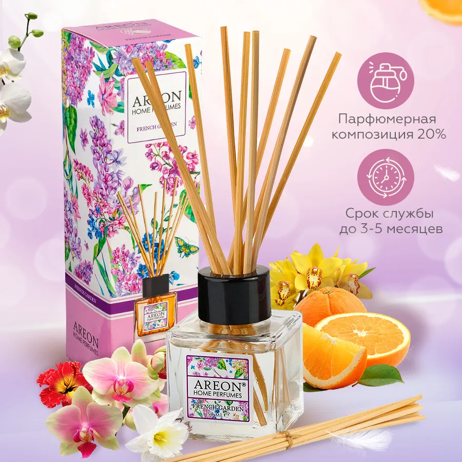 Чтобы раскрепостить, усилить влечение и восприимчивость, используйте манящие ароматы Areon Home Perfume Sticks: Garden Rose Valley, Долина Роз, Garden, Французский сад , French Garden .