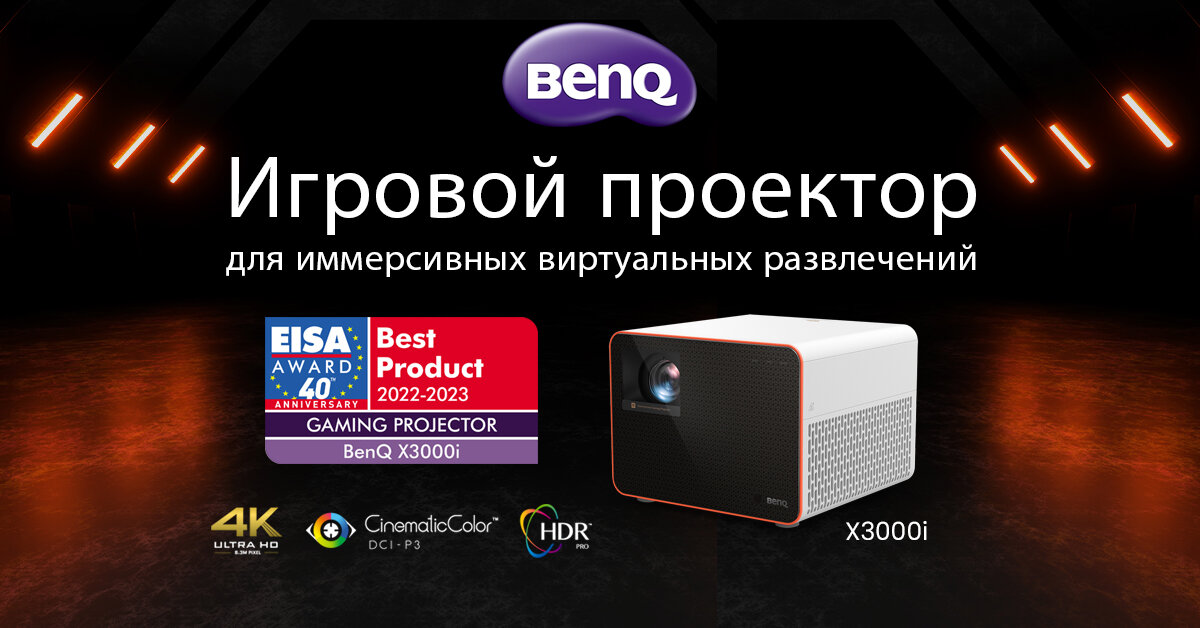 ЭЙНДХОВЕН, НИДЕРЛАНДЫ, 15 августа 2022 г. – Компания BenQ, один из ведущих мировых производителей проекторов с гордостью сообщает, что игровой проектор BenQ X3000i получил престижную премию EISA 2022-2023 в категории "Лучший видеопроектор для домашнего кинотеатра". “EISAвосхищается игровыми возможностями проектора BenQ X3000i с 4LEDисточником света и яркостью 3000 ANSI-люмен благодаря новейшему DLP-чипу и технологии сдвига пикселей. Геймеры наверняка высоко оценят предустановленный "быстрый" режим с возможностью дистанционного управления и временем отклика около 4 мс при 1080p/ 240 Гц (и 16 мс при 4K / 60 Гц), а также три игровых режима, оптимизированных для разных жанров. Игровой проектор BenQ X3000i гарантирует плавное воспроизведение фильмов с кинематографическими цветами благодаря эксклюзивной технологии CinematicColor от BenQ, которая покрывает 100% цветовой гаммы DCI-P3. Входящий в комплект адаптер Android TV и встроенные стереодинамики превращают X3000iв многофункциональный разв