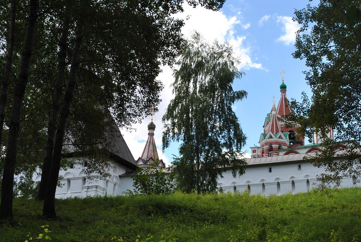 Начало здесь: Не поленитесь – обойдите монастырские стены снаружи, там тихо и безлюдно. С горы, на которой стоит монастырь, открываются прекрасные виды. От стены ведут ступени к колодцу, который был ископан самим Саввой в 1400 году. Вода из колодца считается чудотворной. Правда, наиболее живописный вид на монастырские стены от подножия горы открывается зимой. А летом все утопает в зелени. Пещера, которую выкопал когда-то сам Савва и в которой проводил большую часть времени, находится минутах в 10 от монастыря. Она открыта. Там можно поставить свечи (приносить с собой). Храм над пещерой и весь архитектурный ансамбль скита (живут монахи), к пещере примыкающего, были построены намного позже. А саму пещеру значительно облагородили. По дороге к Пещере находится Источник — купальня преподобного Саввы. Из источника можно набрать благодатной воды. А в купальне окунуться в воды святого источника. Купальня разделена на мужскую и женскую купели, рядом с которыми есть благоустроенные раздевалки.