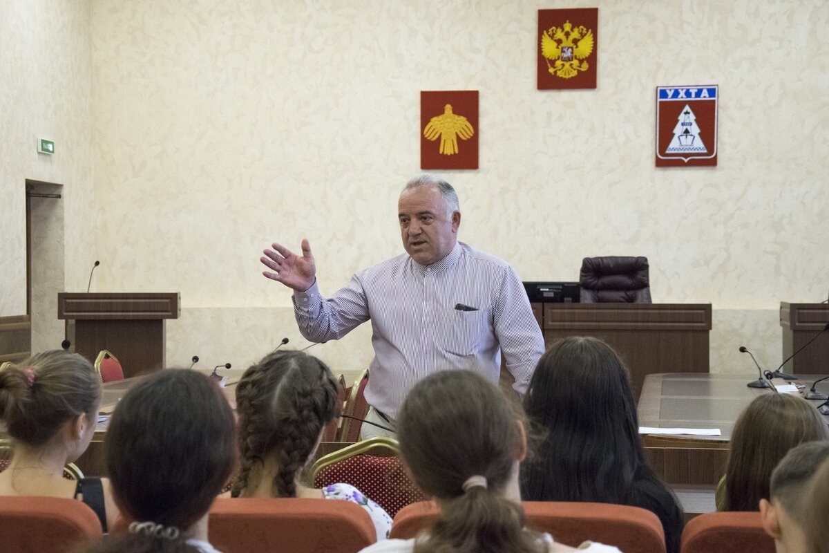 «Жемчужина Севера» - гостеприимный город! Участники «Университетских смен» УГТУ из Донецкой Народной Республики ощутили это в полной мере, познакомившись с жителями Ухты. Вот и глава города Магомед Османов 8 августа радушно принял юных гостей в администрации, ответил на все их вопросы и морально поддержал ребят. «Хоть немножко отдохнули?» - спросил Магомед Нурмагомедович. «Да!!!» - прозвучал дружный ответ. Гости расспрашивали главу обо всем, что им было интересно узнать, и он отвечал откровенно и с юмором. «В шесть утра подъем, в семь утра я из дома уже выхожу. Когда погода позволяет, иду пешком. Это занимает 25 минут. В восемь утра я уже на работе, в 8.45 у меня планерка с заместителями, определяем задачи на день. Дальше могут быть совещания, или ходишь по городу, все контролируешь, какие работы как делаются. Где-то с людьми встречаюсь. Тут кипа бумаг набирается, пока их прочитаешь, подпишешь – это уже семь часов, бывает и в восемь, и в девять часов вечера приходишь домой. Так и прохо