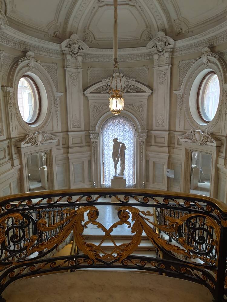 Благодаря подкасту "Зачем я это увидел", в котором рассказывали про выставку "Непарадный Ленинград", я узнала о музее истории Санкт-Петербурга, который расположен в особняке Румянцева. И благодарности моей нет предела, потому что и эта художественная выставка действительно очень интересная, да и сам музей представляет собой зрелище сколь эклектичное, столь и занятное. Во-первых, сам особняк. Ну, туриста в Санкт-Петербурге сложно удивить прекрасными скульптурами, роскошными интерьерами и классической архитектурой. И конечно, особняк Румянцева точно не самый видный из всех особняков, доступных к посещению в северной столице. Но у особняка есть свое очарование и, что важнее, есть своя история. Каждое воскресенье в 13. 00 по залам особняка проводят бесплатную (при покупке билета) экскурсию. В одном из залов в воскресенье неожиданно (для меня) проходили детские соревнования по шахматам. Так приятно, когда здание живет какой-то обычной городской, а не только музейной жизнью. В самое се
