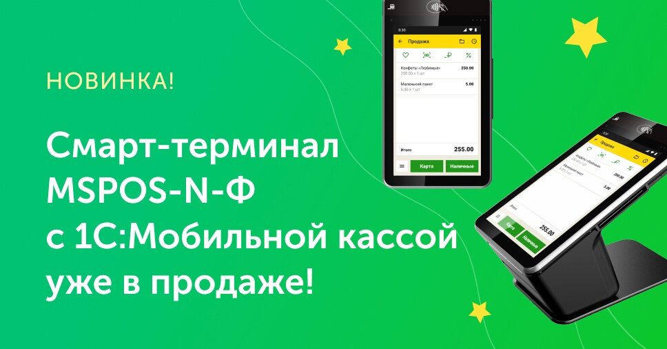 Уже в продаже! Смарт-терминалы MSPOS-N-Ф с предустановленной 1C:Мобильной кассой без абонентской платы