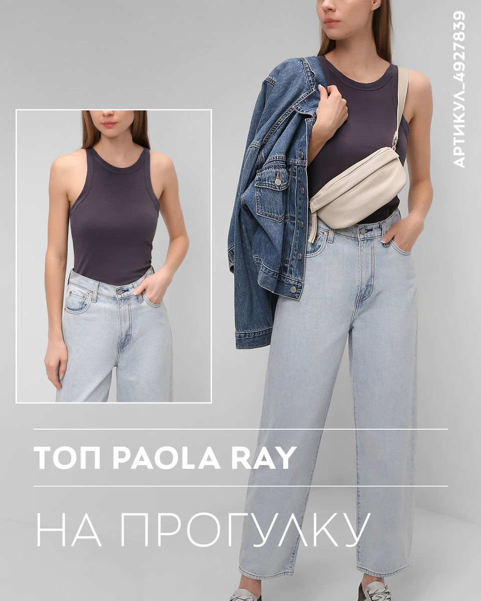 Не секрет, что оптимальное соотношение верхов и низов в рациональном гардеробе — один к трем-четырем. То есть одна юбка или брюки в сочетании с тремя разными топами дадут три совершенно разных образа. К тому же топы можно носить круглый год, неслучайно стилисты называют их самой универсальной одеждой и рекомендуют иметь в гардеробе несколько вариантов. Это отличный нижний слой для жакетов, джинсовых курток и кардиганов, и чем больше топов, тем разнообразнее ваши модные выходы в любой ситуации, от офиса до званого торжества. Paola Ray Топ из хлопка Самым универсальным топом остается классическая хлопковая майка без рукавов, или, как ее еще называют, майка-алкоголичка. Простая, но при этом выразительная модель родом из 90-х подойдет к любым вещам, от шорт и джинсов до широких брюк и юбок миди. Осенью такую модель можно надевать под объемный пуловер с глубоким V-образным вырезом и создавать по-настоящему непринужденные и сексуальные образы. Emme Marella Топ в полоску и с декоративным бант