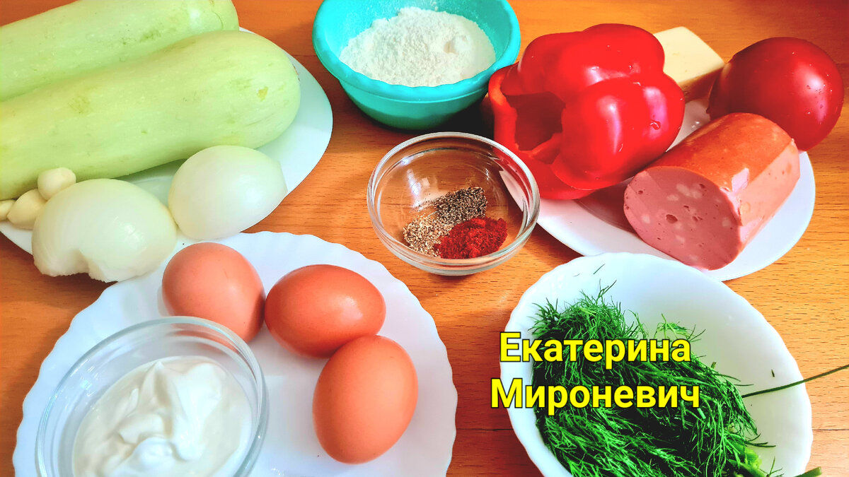 Друзья, всем привет! С вами Екатерина Мироневич и канал "Вкусные Рецепты с Екатериной"! Сегодня делюсь с вами рецептом кабачковой запеканки на сковороде. Можно, конечно, её и в духовке приготовить, но если вы, например, на даче, и духовки у вас нет, то такой рецепт всегда выручит. Как приготовить: Подготавливаю все необходимые продукты. Если кабачки не очень молодые, то их необходимо почистить и удалить семена. Если Вы, наоборот, хотите, чтобы чувствовался вкус кабачков, чуть присолите кабачки, дайте им постоять и отожмите лишний сок. Можно заменить колбасу отварным куриным мясом. Вы можете этого не делать, а положить их в начинку в сыром виде. Начинка готова. Собираю запеканку. Моя запеканка готовилась 40 минут. Если тесто немного приподнимается в середине, то можно проколоть его вилкой. Готовность определяю по краям теста. Провожу лопаткой по окружности сковороды, по краю теста. Любые кабачковые блюда, в горячем виде, всегда бывают мягкие, в т.ч. оладьи или блины, им необходим