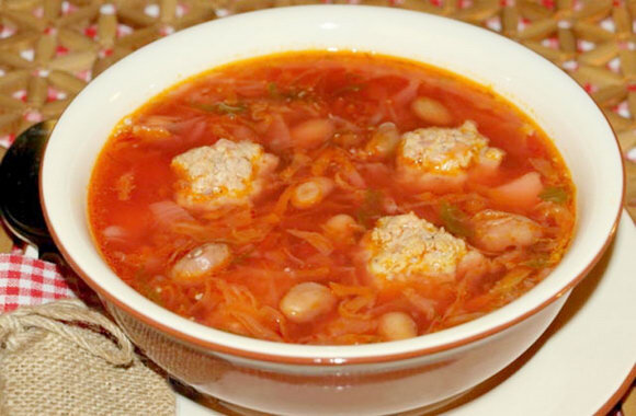 Ингридиенты: свекла - 3 шт. свежая или квашенная капуста - 150 гр. картофель - 3 шт. морковь - 1 шт. лук репчатый - 2 головки томатная паста - 3 ст. ложки чеснок - 2 зубчика соль черный молотый перец вода 1,5 л фрикадельки Для фрикаделек: мякоть говядины, баранины или свинины - 200 гр. лук репчатый - 1 головка яйцо - 1 шт. вода - 1/4 стакана. Способ приготовления: Борщ готовят, как обычно, но при подаче в него кладут фрикадельки, сметану и зелень. Для фрикаделек мясо пропустить через мясорубку 2-3 раза, соединить с сырым мелконарезанным луком, сырым яйцом, холодной водой, молотым перцем, солью и хорошо размешать. Из однородной массы формируют шарики по 10 гр., припускают их в бульоне до готовности. Бульон от фрикаделек используют для варки борща. Приятного аппетита!