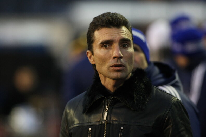 А.Г.: Нет. У нас была предыгровая тренировка. А стадион, где нам предстояло играть - он как музей: там везде трофеи, кубки. И мои ребята начали бегать и фотографироваться с ними. Все это выглядело очень ущербно. Я начал нервничать, но поначалу говорить ничего не стал. И тут ко мне подходит капитан команды и говорит: Александр Витальевич, надо что-то делать. Я отвечаю: завтра все сделаем. На установке. Но он не согласился: надо сейчас. А я понятия не имел, что говорить сейчас. Я понимал, что завтра стадион в 50 тысяч может вывести наших игроков из равновесия. Потому что никто из наших футболистов не играл еще в такой аудитории. Тогда я подозвал одного из игроков и сказал: давай, команда будет изображать 50 тысяч зрителей, а ты показывать, что тебе все равно. Он попытался вжиться в роль, но получилось не очень, и пришлось подключиться мне (улыбается). И в это момент и стали снимать тот ролик, который потом везде разлетелся. Жене, кстати, та предыгровая установка не очень понравилась. Она сказала: «В принципе, все нормально, только копья тебе не хватало». Да, я выглядел реальным клоуном, но это помогло нам правильно настроиться на игру.