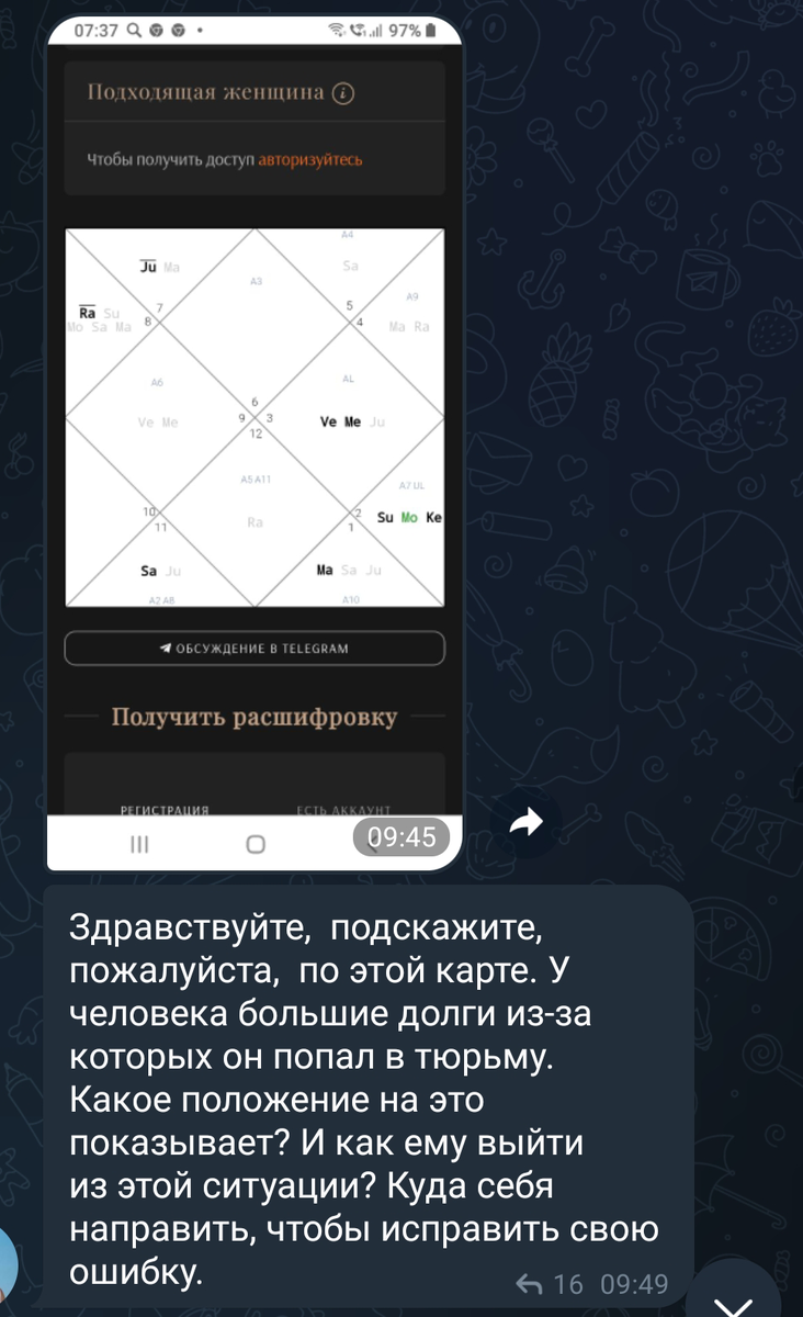 Последнее время я все чаще помогаю начинающим астрологам разобраться в гороскопе рождения. Обратилась женщина с просьбой разобраться в сложной ситуации в судьбе молодого парня, который набрал кредитов и его посадили в тюрьму. Многие астрологи смотрят гороскоп очень поверхностно. Например так👇 Представляете сколько людей с Сатурном в 6 доме. Но не все же они в тюрьме?! И слава богу😊 Как я вижу эту ситуацию в гороскопе и какие рекомендации можно дать парню? Сразу скажу, что это переписка с астрологом любителем на птичьем астрологическом языке🤪 Сначала на основании чего я делаю выводы и потом их понятное описание😊 Видите разницу в ответах? Сейчас в телеграме я запустила экспериментальный проект "Спроси астролога". У вас тоже есть вопрос к астрологу? Переходите по ссылке в телеграм 👇 Вся информация будет в закреплённом посте. #гороскоп #джйотиш #астролог #астропрогноз #обучениеастрологии #курсыастрологии #транзитыпланет #васту #психология #арест