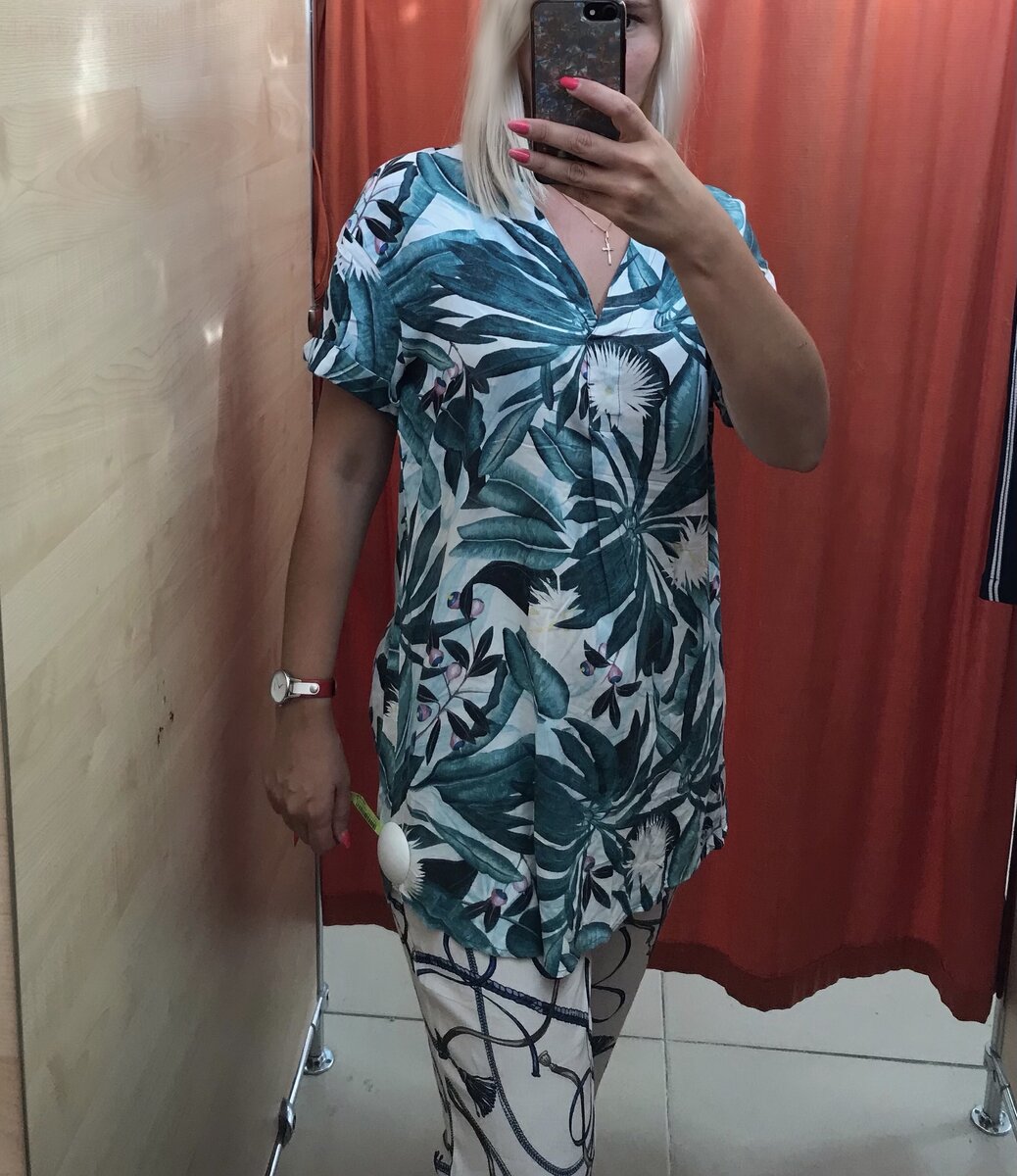 Заглянула в среду на скидку в 30%, решила, что вероятно ассортимент будет больше, чем в пятницу. Очень удивили цены на свитера и блузки (рубашки), 2 варианта цены на одно и на другое: 1000 рублей и 500 рублей. С учетом того, что в разделе "блузки" висели вполне себе топы (на тонких лямках или коротенькие кофточки, заканчивающиеся под грудью), то приравнивать по цене свитер и подобную небольшую (явно сезонную) вещь кажется странным. Из свитеров мне не приглянулось вообще ничего, поэтому ничего не взяла в примерочную. Одна вещь была взята из раздела "блузки" Цена 500рублей (со скидкой 420 рублей) В предыдущих статьях просили показывать вещи на себе, пытаюсь, насколько это возможно в маленькой примерочной...ну и вещи, конечно, зачастую жеваные, мятые... Странное сочетание с брюками, это потому что брюки тоже из серии-примерка))) Поэтому впору сделать пометку - смотрим только на рубашку!))) Далее отдел с нижнем бельем и купальниками. В разделе "ночное" "выловила" кофточку в бельевом стиле
