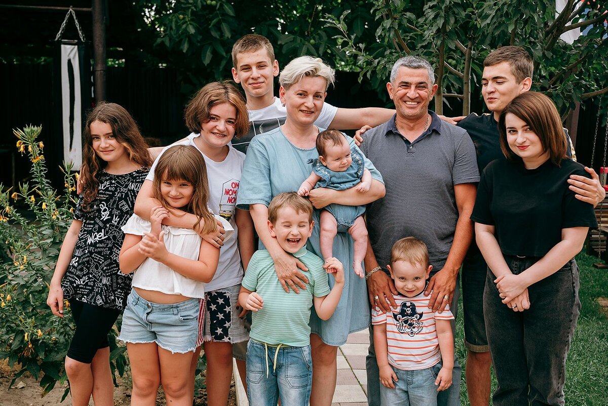 Вероника Ковбанина, 9 детей, Волгоград Арнелла, Мишель, Анабель, Ева, Карине, Рафаэль, Давид, Леон, Тигран — это не герои голливудского фильма, а любимые чада многодетной волгоградки Вероники Ковбаниной. А красивые имена им предлагал любящий отец — Карен. Сама Вероника росла в небольшой семье, у нее была только старшая сестра. Нашей же героине многодетное материнство предсказала цыганка, да и то не угадала — предвидела лишь пятерых малышей. - Вероника, вы в своем детстве встречали многодетные семьи, которые были для вас примером? - Я росла в семье со старшей сестрой и всегда хотела кого-нибудь младшего, но не получилось. Хотя, бабушки и прабабушки у нас с супругом были многодетными. Они для нас и стали примером. «Переломный» момент в нашей семье наступил после третьего ребенка, Давида. Вроде бы уже все есть — дочка и два сына, но следом совершенно неожиданно у нас появилась Ева, за ней Анабель и Мишель. А супруг все эти годы мечтал о третьем сыне... - Если сравнивать себя в начале семе