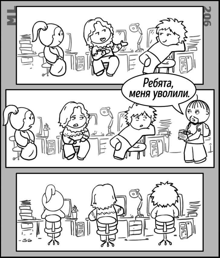 Сегодня пойдет речь о комиксах художника из Санкт-Петербурга Юрия Кутюмова. Эти работы будут близки многим, так как все сюжеты взяты из жизни. Юрий говорит, что он склонен к депрессиям. Как-то на работе ему было скучно и грустно, поэтому он начал рисовал на листочке все, что в голову придет, и вдруг получился интересный персонаж. Так, со временем, все это переросло в комиксы. Свои работы художник рисует обычной шариковой ручкой, потом закрепляет линии лайнером и вновь доводит тени ручкой. Обычно он делает это на коленке или рабочем столе, может даже использовать старую коробку, в общем главное, чтобы поверхность была ровной. Далее Юрий фотографирует рисунки, подправляет их на компьютере и публикует. У художника есть несколько серий комиксов с различными персонажами. Он очень любит рисовать ироничные, остроумные и забавные иллюстрации. Юрий выпускает подборки под названием "My Life", "Ненастя", "Не герой", "Бородатое сердце" и др. Последний комикс уже не обновляется. Художник говорит,