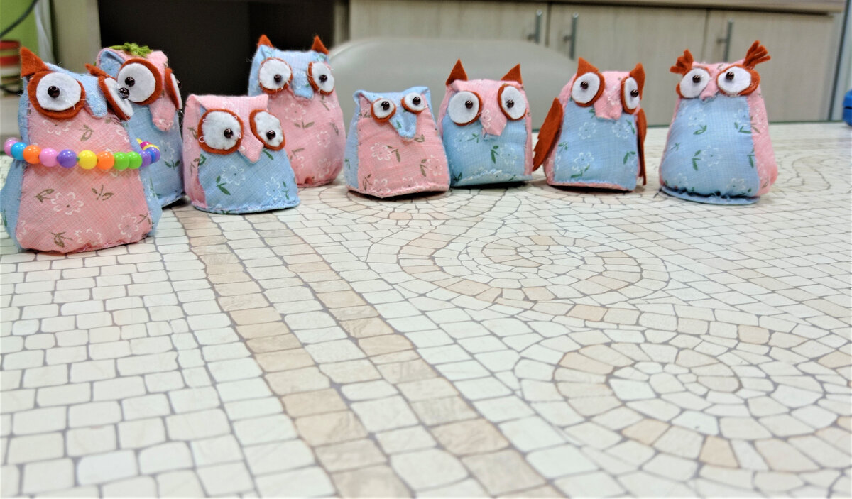 В рамках трудотерапии людьми с ограниченными возможностями были выполнены мягкие игрушки из ткани и синтепона «Совушка». Справиться с иголкой и ниткой человеку с заболеваниями верхних конечностей не так-то просто, но под чутким руководством трудотерапевта и сотрудников всем получателям социальных услуг удалось сшить небольшую игрушку и реализовать творческий потенциал, каждый украсил свое изделие по собственному вкусу. Небольшие, мягкие игрушки могут послужить брелком или просто забавным украшением, а сам процесс шитья создает релакс и служит антистрессом.