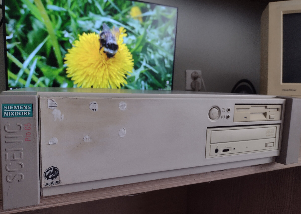 Всем привет. Не так давно ко мне попал компьютер прямиком из 1996 года. Системный блок от уже несуществующей компании “Siemens Nixdorf”, модель системного блока “Scenic pro c5 100”. Системный блок сделан в Германии. Компьютер собран в горизонтальном корпусе. На задней панели, сразу можно увидеть знакомые многим порты PS/2, так же два COM порта. Рядом с COM портами расположен уже не очень актуальный параллельный порт (lpt), раньше его использовали для подключения принтера. Выше расположен всем привычный ethernet port (интренет, lan порт), а еще выше USB. Но USB там не было, USB карта была установлена мною. Перейдем к Характеристикам: Процессор: Intel Pentium Processor with MMX Technology 133 MHz. Если описывать кратко, то это одноядерный процессор с частотой 133 MHz, сокет 7. Материнская плата: Точная модель неизвестна, но она от Siemens Nixdorf на сокет 7. Оперативная память: это simm 72 память, общий объем 24 мегабайта. Видеокарта: она здесь встроенная, видеокарта от Cirrus L
