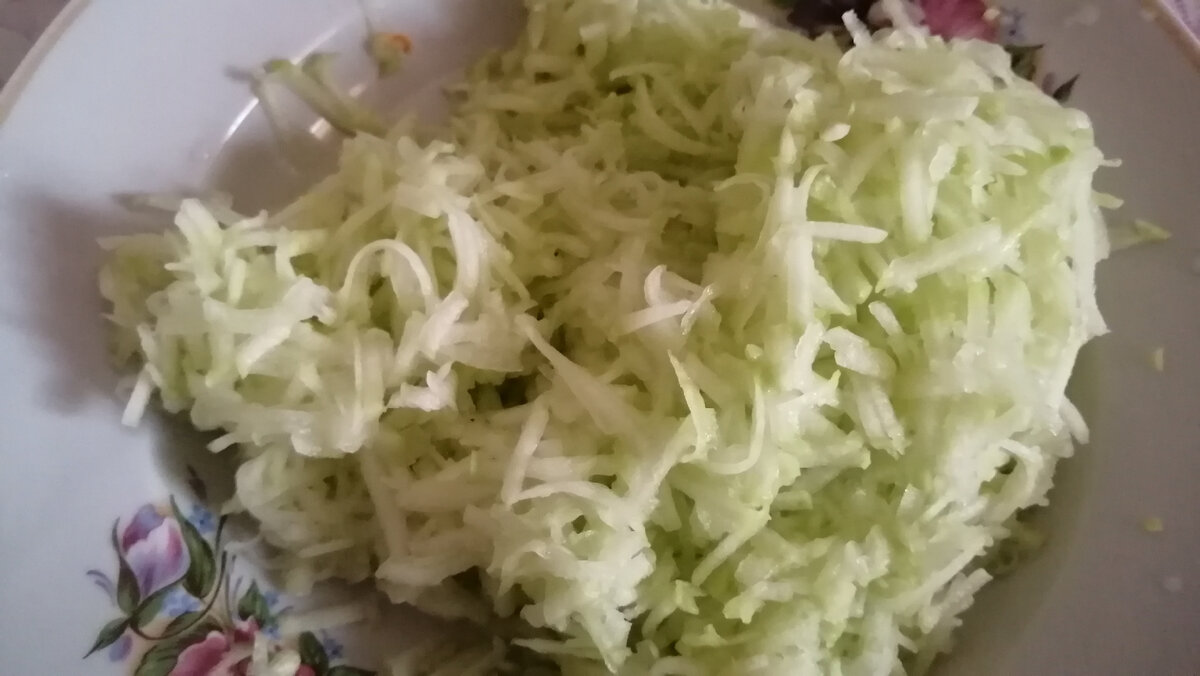 Привет ! Самая пора кабачков, когда сейчас их готовят в каждом доме: кто-то жарит, кто-то тушит, а кто-то закрывает. Вот и мы тоже, то жарим просто колечками. А в последнее время дети раскушали оладьи. Точно по такому же рецепту я решила испечь пирог, лишь добавить побольше муки. Посмотрела, что у меня растительного масла мала оставалось, не хватит пережарить. Буду проводить экспромт. Я не думала, что детям это так понравится. Да и мне тоже. Значит, что нам нужно: Это кабачки. Моем, очищаем и трем на тёрке. Морковь тоже моем, очищаем и трем на тёрке. Еще нам будет нужен лук. Всего одна головка. Его мы тоже очищаем и трем на тёрке. Натертые кабачки немного полежали и дали сок. Я их отжала, сок слила. Теперь вместе перемешиваем с морковью и луком. Добавляем два яйца. Солим и немного добавляем специй. Всё хорошенечко перемешать, чтобы кабачки и морковь как следует просолились. Теперь добавляем пол чайной ложки соды. Чтобы при жарке или выпечки содержимое могло подняться. Хорошо перемешив