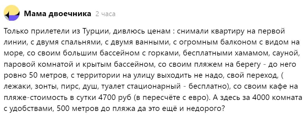 Сравним доступность отдыха в Турции и Сочи. Ответ на комментарий нашей читательницы.