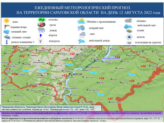 МЧС по Саратовской области составило очередной прогноз погоды на предстоящие сутки. Жара будет последовательно усиливаться с запада на восток.