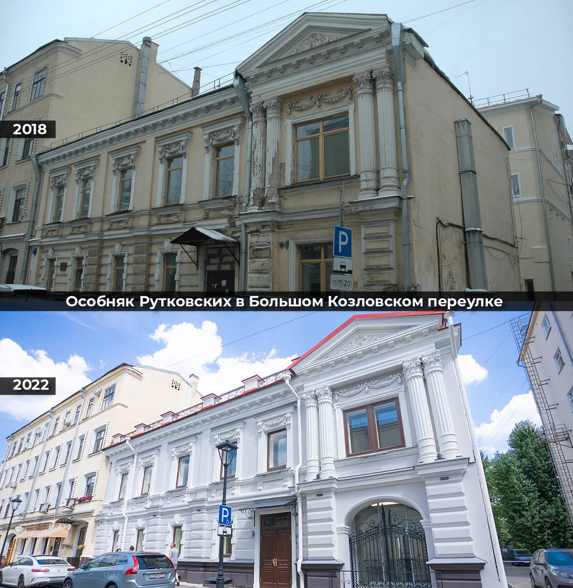 Борис Рутковский был архитектором, инженером Министерства путей сообщения и коллежским советником. В 1888 году его супруга Мария подала прошение о разрешении построить каменный двухэтажный жилой дом вдоль Большого Козловского переулка и трехэтажный доходный дом. Когда такое разрешение было получено, Борис Владимирович приступил к разработке проектов и строительству зданий. Спустя 10 лет, в 1898 году, Мария Рутковская продала владение купцу Шавелу Ширману, торговцу мукой и сахаром. Новый собственник оборудовал в особняке системы водопровода и канализации. Затем у юго-восточного угла доходного дома возвели пристройку. А к северному торцу со стороны смежного владения пристроили четырехэтажное здание доходного дома. В советские годы особняк Рутковских перешел в собственность государства. Помещения в нем были перепланированы, их начали использовать как коммунальные квартиры. В 1990–2000-х годах в особняке работала стоматологическая поликлиника. В здании XIX века отреставрировали штукатурный