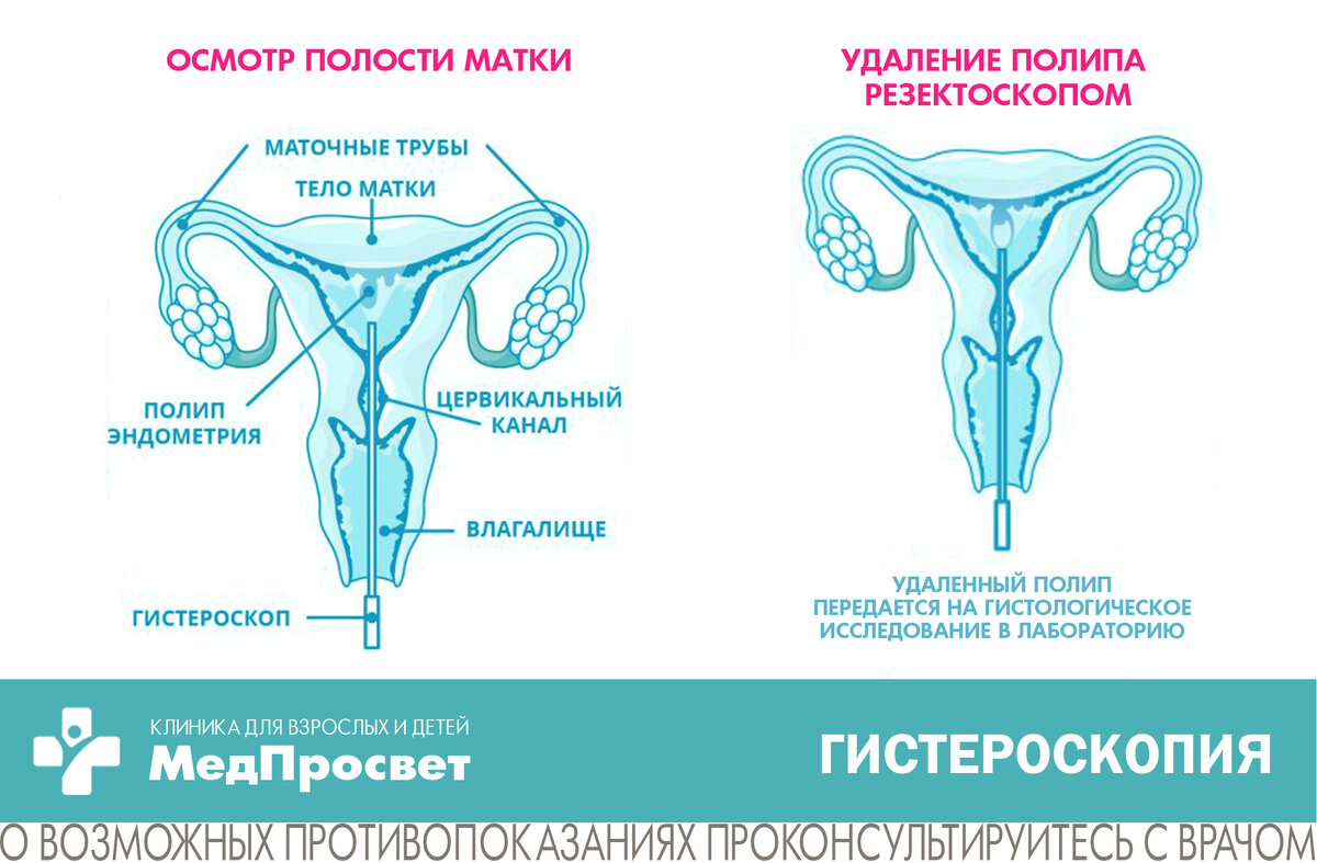 ✅ Гистероскопия - наиболее информативный и малоинвазивный метод диагностики патологий матки (гиперплазии, полипов, синехий, миом и др.). Диагностику проводит врач акушер - гинеколог. В полость матки через цервикальный канал вводится эндоскопическое оборудование (гистероскоп), при помощи которого врач проводит осмотр состояния слизистой. Для постановки точного диагноза акушер-гинеколог стандартно берет 2 образца биоматериала (1 биоптат из полости матки, 2 биоптат из цервикального канала), которые в дальнейшем отправляются на гистологическое исследование. При обнаружении новообразований полости матки они могут быть удалены при помощи резектоскопа (современный способ лечения - точечное удаление без травматизации здоровых тканей) или при помощи раздельного диагностического выскабливания. Операционный биоматериала также отправляется на гистологическое исследование. ❓ Какие гистероскопии бывают? ✅ Диагностическая – осмотр без хирургических манипуляций; ✅ Лечебная - с применением хирургически