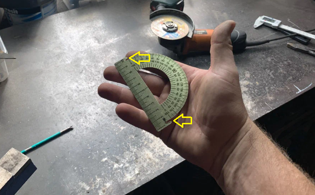 Приветствую Вас, уважаемые гости и постоянные читатели моего блога! Если бы я раньше догадался сделать такую штуку, то я сразу же облегчил бы себе работы по разметке и разуклонке двора под мощение плиткой, при монтаже забора, да и во всех других случаях, где требуется отбивка горизонта и разметка уклона. Младший сын у меня идет в этом году в первый класс, поэтому вчера мы решили прогуляться по канцелярским магазинам и подготовить нашего первоклассника к школе. И оказалось, что папе тоже иногда полезно прогуляться по таким магазинам... В магазине посетила голову интересная идея и я прикупил себе транспортир, вышел всего 65 рублей. Конечно, это не советский стальной инструмент, но уже радует, что сделан он хоть из тонкого, но из металла. Итак, приступаем... По бокам транспортира есть ушки, на которых делается с помощью болгарки два одинаковых углубления. Чтобы убедиться, что они сделаны на одну глубину, можно использовать штангенциркуль. Если отклонение будет на доли миллиметров, то можн