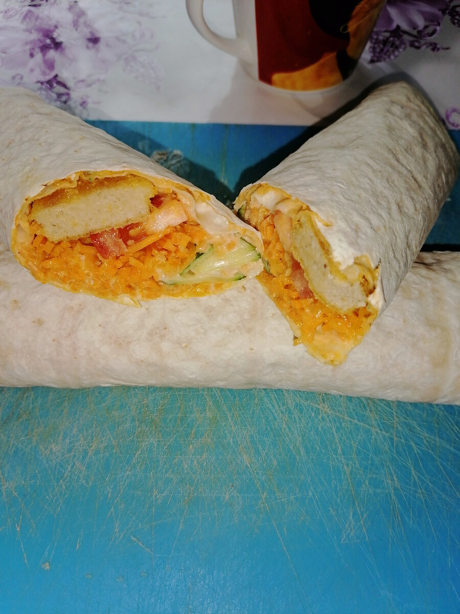 Все знакомые мои знают как я люблю лаваш. И самая любимая у меня еда - это шаурма. Завалялся у меня лаваш, а в холодильнике была морковь по-корейски. Решила все эти продукты пустить в ход. Для этого понадобится: Лаваш - 2 шт (по количеству человек); Нагетсы - 10 шт; Морковь по-корейски - 300 гр; Огурец - 1 шт; Помидор - 1шт; Майонез, горчица, кетчуп - по вкусу (для соуса). Нагетсы пожарила на сковороде. Огурец нарезала вдоль тонко. Помидор нарезала пополам и на полукольца (если правильно написала). Майонез, горчицу и кетчуп смешала. Лаваш смазала соусом, выложила нагетсы по 5 шт на каждый лаваш. Сверху нагетсов выложила морковь по-корейски, помидор и огурец. Сверху слегка капнула соусом. Завернула все и отправила в духовку на решётку. Через 10 минут (время смотрите по своей духовке) можно приступать к чаепитию. Приятного аппетита! Благодарю что прочитали статью до конца! Ставьте лайк и подписывайтесь на канал!