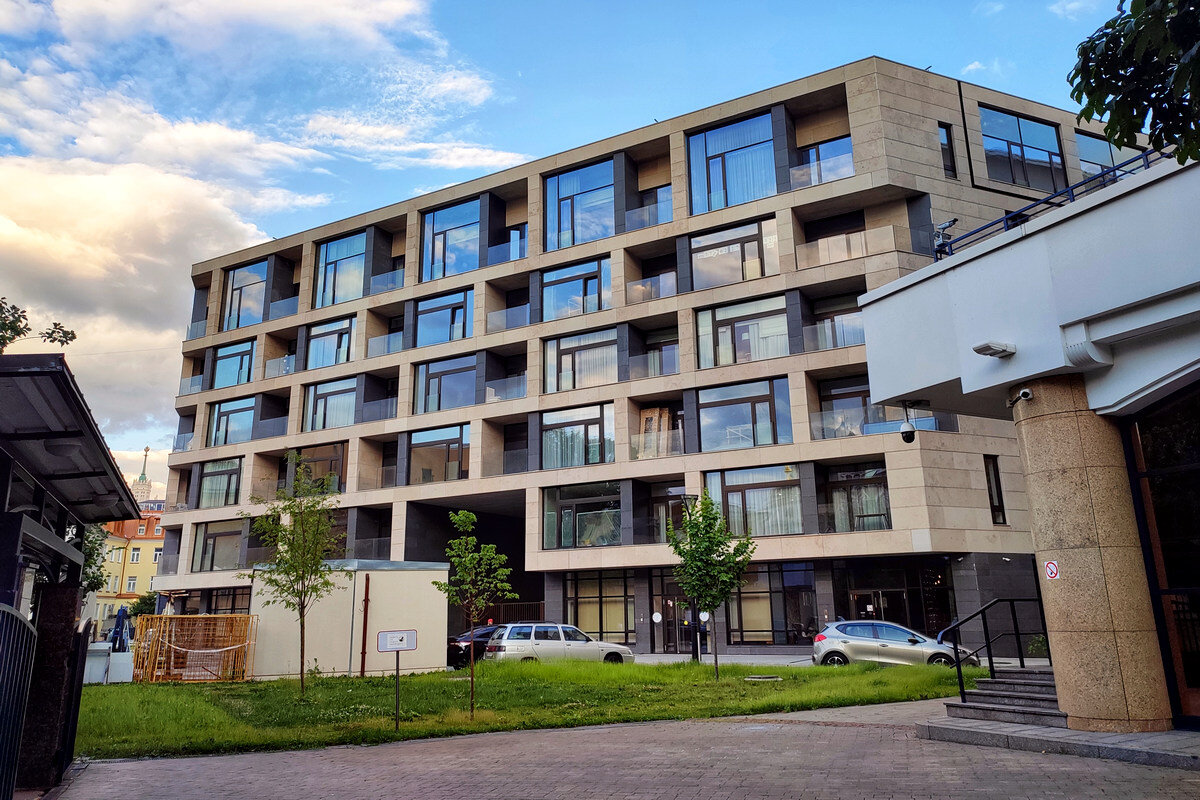 Садовническая улица, Садовническая и Раушская набережные, вот это вот все. Хорошо знаю тот район. Однако, стоит отвлечься на пару лет, знакомые места можно не узнать. Недавно построили комплекс Balchug Viewpoint. Проект разработан архитектурным бюро "БРТ РУС" и знаменитым Хади Тегерани. Застройщик - компания "Интеко". Не помню, что было на этом месте раньше. Теперь премиальные апартаменты. Это вид со двора, другая сторона выходит на набережную Водоотводного канала. У дома есть свой собственный закрытый двор, внутрь не попасть.