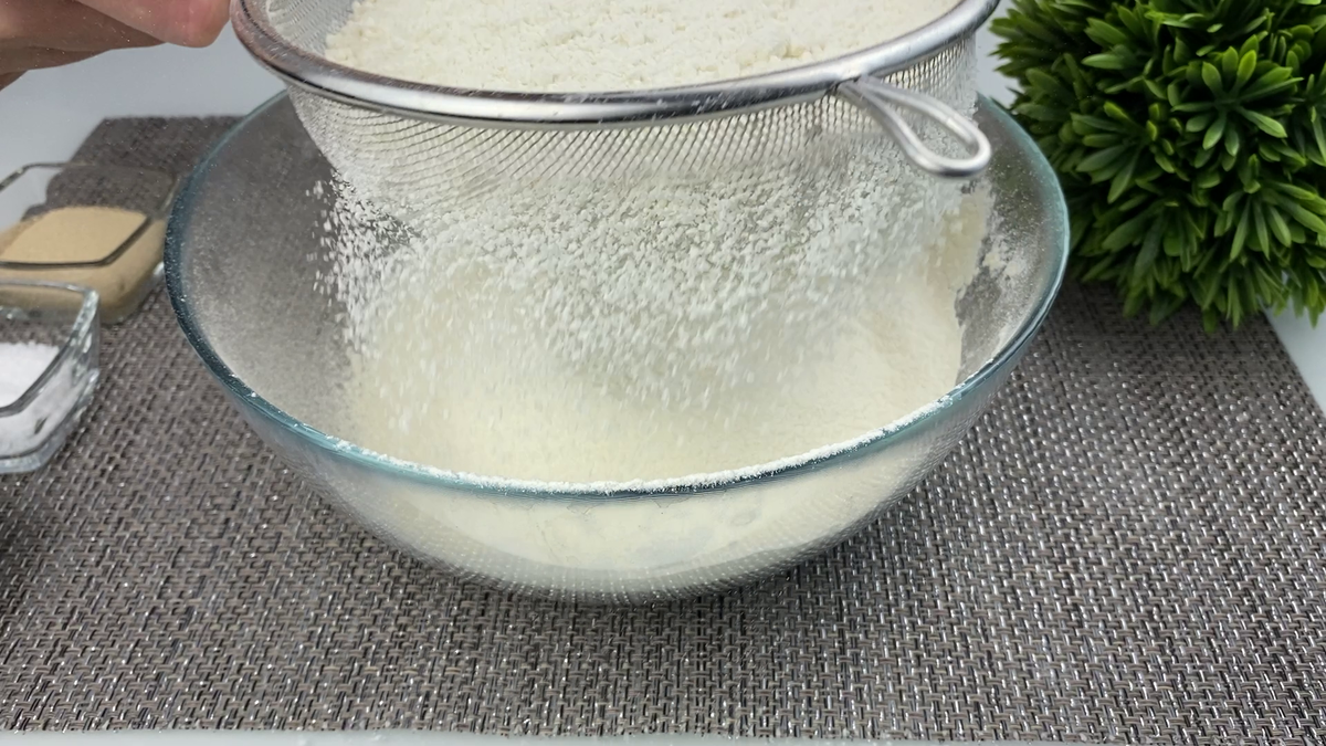 Чтобы не было комочков, через сито высыпаем муку в глубокую чашку.