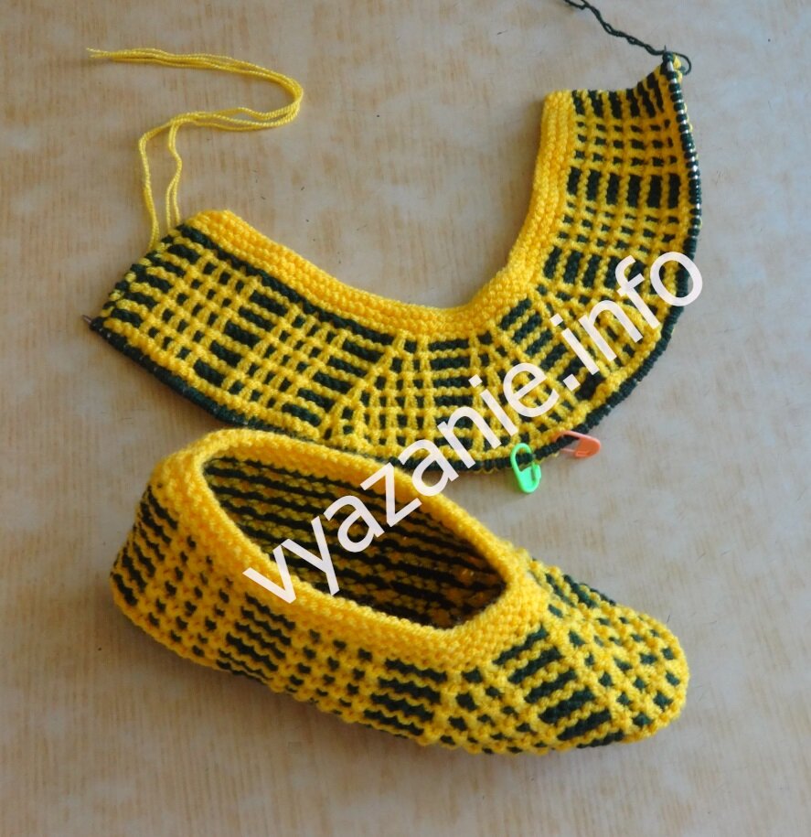 Для тех, кто любит вязать лицевыми и кто ещё "не дружит" с жаккардом. Очень простой узор. Удобные следки или тапочки для дома. Вязать лучше из акрила или полушерсти. Если вязать из чистой шерсти, быстро изнашиваются. Мои следки на 37 размер ноги. Вязала спицами №3 из пряжи метражом 450 г в 100 м в 2 нити.