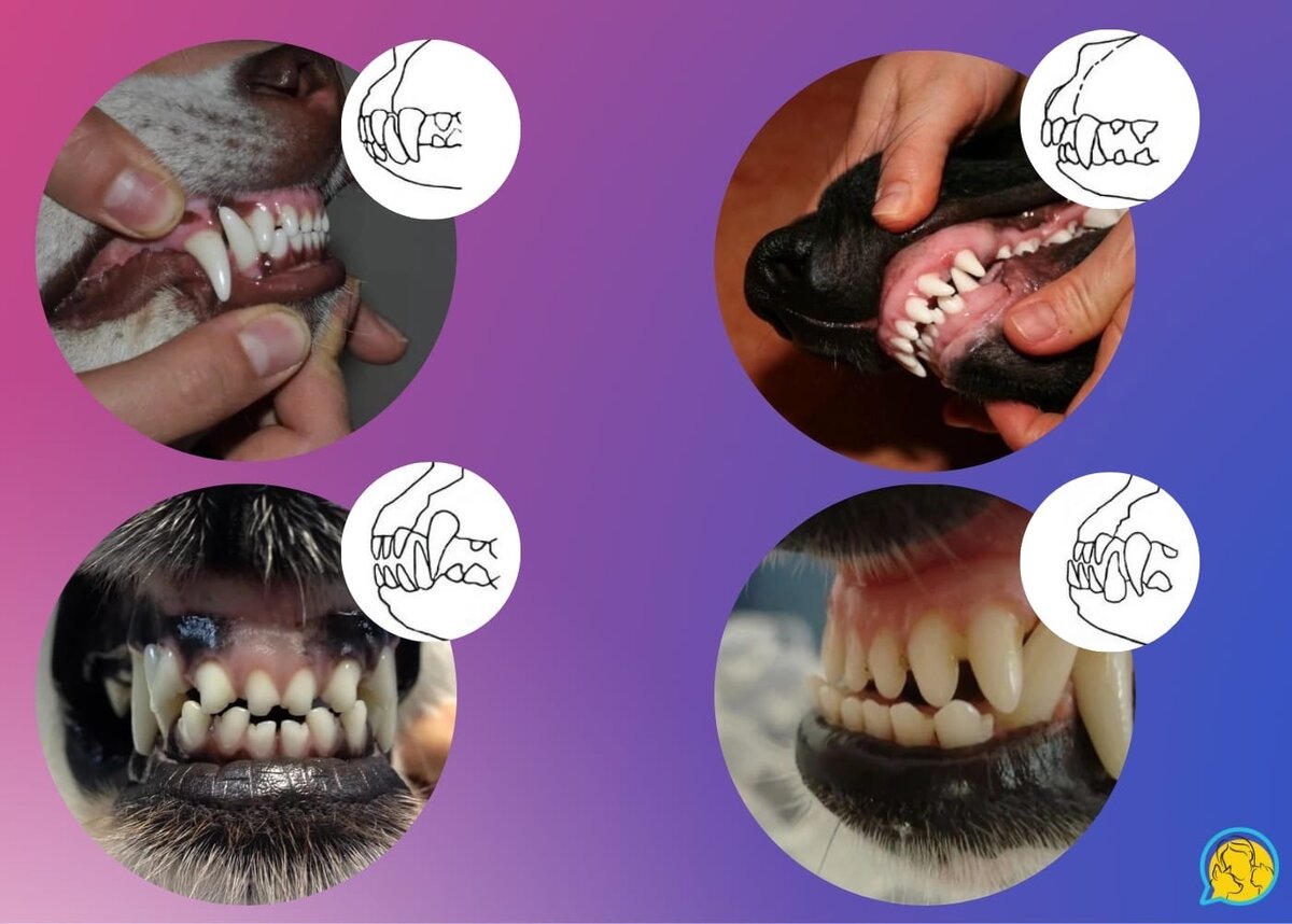 Заводчики собак часто употребляют этот термин, а также понятия о прикусах в объявлениях о продаже щенков. Сколько это - комплект, и как могут располагаться зубы у животных? В норме у домашней собаки 42 коренных зуба, а у щенка - 28 молочных. В результате селекции у мелких пород такое количество зубов может просто не помещаться в пасти, поэтому «неполный комплект» - это серьезный порок, обусловленный врожденным отсутствием 1, 2 или нескольких зубов. Прикусом же называется прилегание верхних зубов к нижним. И вот как бывает: 🔸Ножницеобразный - является нормой у большинства пород собак и у диких хищников, такое положение обеспечивает захват пищи. Верхние зубы закрывают нижние, оба ряда плотно прилегают друг к другу. 🔸Клещеобразный или прямой - зубы верхней и нижней челюсти располагаются на одном уровне, прилегают друг к другу нижним и верхним краем. При таком прикусе происходит быстрое стачивание зубов. 🔸Недокус - нижняя челюсть недостаточно развита. Между резцами образуется пространст