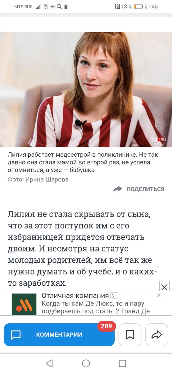 Всем здравствуйте! Вчера вечером перед сном пролистывала ленту местных новостей и наткнулась на знакомое лицо. Репортаж был о том, что женщина стала бабушкой в 34 года. Так вышло, что у самой героини репортажа сын рано родился, и сын теперь нашел девушку очень рано, родился ребенок. Мне, как постороннему человеку от этой семьи, все равно. Какая кому разница, как складывается чья-то жизнь. Лишь бы люди были довольны тем, что у них происходит и не пересекали границ чужого счастья. А они и не пересекают. Живут своей жизнью, ни у кого ничего не просят. Женщину в интервью я узнала сразу. Яркая, красивая внешность. Она дважды была у меня в магазине, первый раз зашла ранней весной этого года. Тогда она радостно поделилась, что у нее родилась недавно маленькая дочка, а теперь еще и сын с девушкой ждут ребенка. Я тогда не совсем состыковала в голове, как это: он еще не сдал экзамены, а кого-то ждут. Может, я чего не поняла. Но потом убедилась, что всё я поняла правильно. Но женщина была не у