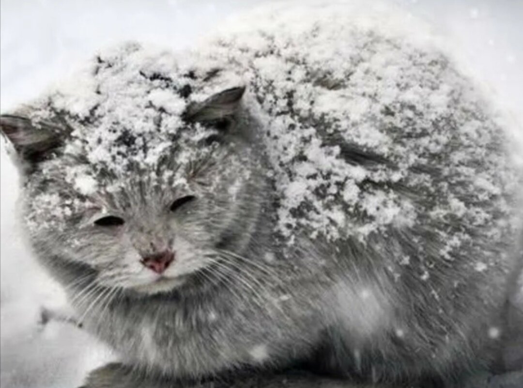 Кот лежал неподвижно, укрываемый мягко идущим снегом.