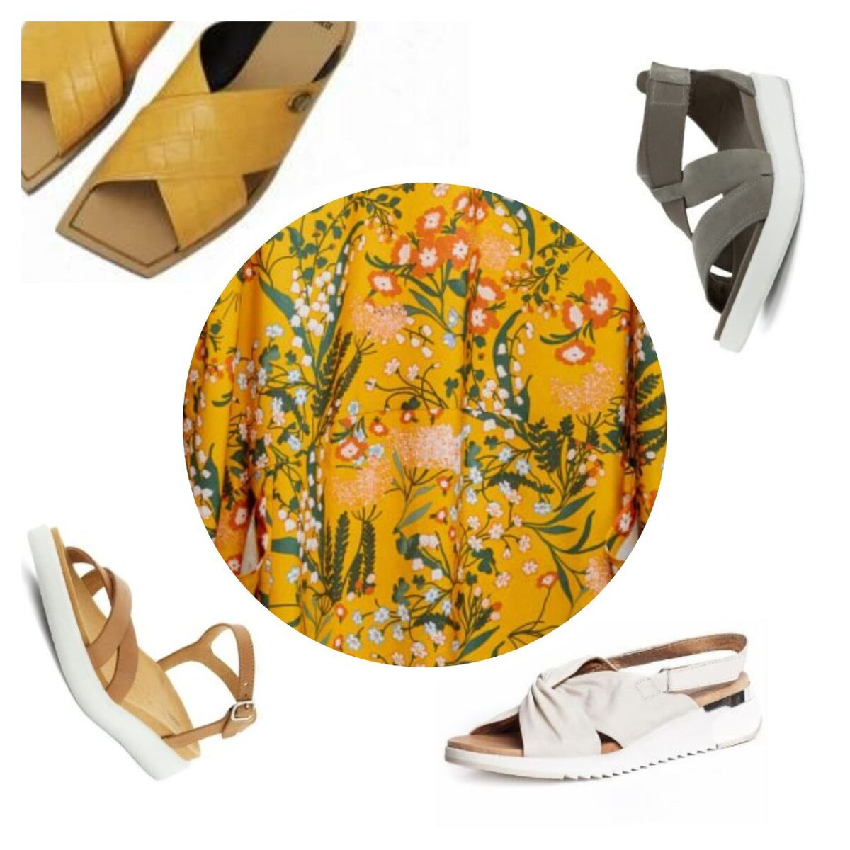 Лето и начало осени - бархатный сезон, представим что нам уже завтра предстоят приятные хлопоты на море и прогулки по песку. Самое простое - босоножки. Легко сочетать с белым, бежевым. Чуть сложнее выбрать цвет из палитры принта или использовать основной. Верхняя одежда для прохладных вечеров или ярких рассветов - джинса подойдет под любой принт, главное подобрать оттенок. Модное сочетание с эко кожей (оттенки из принта): Пиджаки - классика многослойного образа для офиса: Оригинально, удобно и тепло - Пончо: Оставим платье самостоятельным элементом и добавим к нему современные аксессуары - тюрбан или повязку. Лайфхак для пляжа - если волосы после купания соленые или растрепалась укладка, то тюрбан или косынка спасет ситуацию и станет стильным ярким акцентом. Сумка-сетка/плетеная сумка отлично подходит для прогулок на отдыхе, яркие босоножки подчеркнут отпускное настроение. Можно подобрать в тон платья, либо использовать классическое бежевое плетение, которое подойдет практически к л