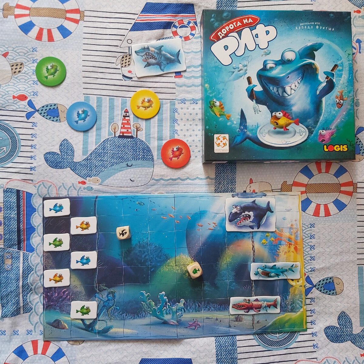 Как много интересного в подводном мире 😍! Но маленьких рыбёшек везде ожидают опасности... В игре "Дорога на риф" вам предстоит помочь своим рыбешкам доплыть до рифа. Но их стерегут хищники! Как не стать обедом акулы и победить? Сможет самый везучий и находчивый! На картонном поле располагаются рыбешки с одной стороны и хищники с другой стороны. Каждый игрок кидает по очереди два кубика. На них изображены хищники и рыбёшки разного цвета. Игрок передвигает персонажей, выпавших на кубиках. Но каких именно - решает сам. Своих рыб и хищников можно передвигать вперед, вверх и вниз, рыб соперника - только вперед. Если хищник с рыбкой попадают на одну клетку, то рыбка считается съеденной и убирается из игры. Выигрывает тот, чья рыбка первой достигла рифа, либо на поле остались только рыбёшки одного игрока. ⚠️Можно менять сложность игры. Для этого выбирать большее количестве хищников и тех из них, которые толще и больше. Также можно менять длительность партии и играть 2, 3 или 4 рыбешками