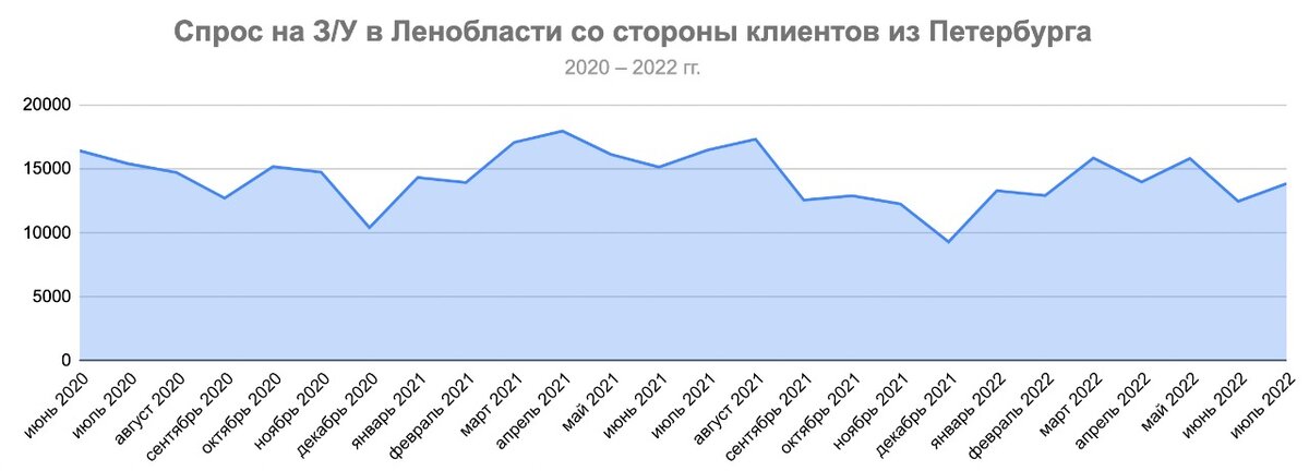 Средняя стоимость сотки за 2 года выросла в 2,5 раза. Эксперты компании DSK Group company проанализировали динамику спроса на покупку участков в Ленинградской области со стороны клиентов из Санкт-Петербурга. В июле 2022 года количество запросов выросло на 11%. Согласно данным экспертов компании DSK Group company, по итогам июля 2022 года спрос на покупку земельных участков в Ленинградской области со стороны клиентов из Санкт-Петербурга вырос на 11,04% относительно результата за июнь текущего года. В нынешнем году интерес жителей мегаполиса к приобретению участков в соседнем регионе показывал положительную динамику в четырёх из семи месяцев. Несмотря на рост, в июле нынешнего года количество запросов на покупку земельных участков в Ленобласти со стороны клиентов их Петербурга оказалось на 15,91% ниже, чем в июле 2021 года и на 10,12% ниже, чем в июле пандемийного 2020 года. В целом, за семь месяцев нынешнего года, с января по июль включительно, интерес к покупке земли в Ленобласти с