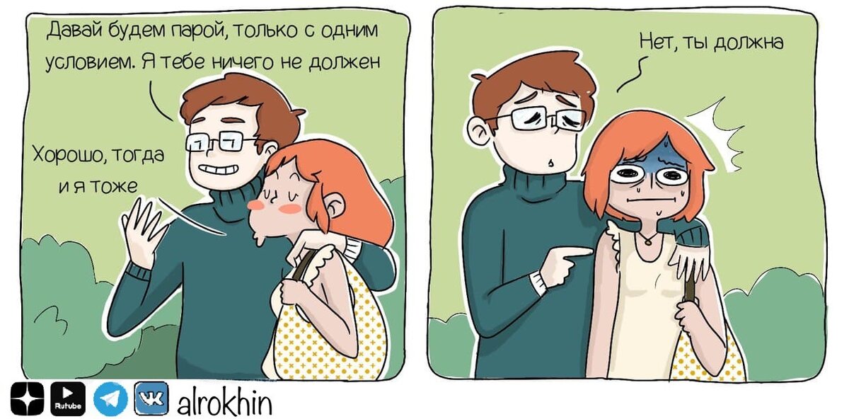 У каждого из нас с детства заложены определенные программы. Стереотипное мышление и поведение. Когда-то родители, когда-то мы сами, когда-то социум настроили такие программы и до сих пор ими пользуемся. Если ты меня любишь, то ты должен (заботиться обо мне, слушать и слушаться меня, делать то, что я говорю и прочее). За такой установкой стоит: "Я тебе даю 100 рублей, ну и ты мне тоже должен дать товара на столько же". Кто будет определять соразмерность денег и товара? А если товара недостаточно? Вот и получается постоянное бодание: "Я делаю больше тебя, а ты нихрена". С другой стороны возмущение, обратный наезд и защита: "я то как раз делаю, это ты нихрена не делаешь". Данные убеждения (где есть надо и должен) способствуют появлению требований, а за ними повод для обид и ожиданий от других. Мы привыкли жить по определенным правилам и если у другого человека эти правила другие, то возникает конфликт. Правила дают возможность контролировать жизнь. Знать, что будет за действиями моими или