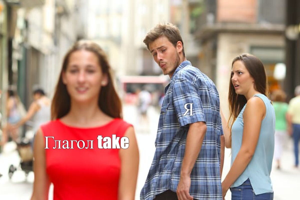 Всем английский Hello! Фразовый глагол-это, конечно, полезно, обогащает нашу речь, в общем, упрощает Speaking, но в то же время путает. И такая штука, как "phrasal verb", есть только в германской группе языков. Да и с другой стороны-это их изюминка. Сейчас разберемся на примерах одним из самых распространенных таких глаголов-это to take! Англоязычные част используют эти конструкции в языке, поэтому их знать необходимо! Начнем с глагола, который часто можно услышать в нашей речи. Это take out, означающий вынимать, выносить. Для нашей культуре подходит как нельзя кстати. И еще логичное значение: сводить куда-нибудь (на свидание). Очень похоже на go out, переводящийся как выходить на улицу. Также этот фразовый глагол имеет значение, схожее с to kill: убить, "убрать" Can you, please, take out the garbage?- можешь, пожалуйста, вынести мусор? Take this box out from the car- вынь эту коробку из машины. Заметили, что во втором примере глагол take и out разделены. Это, так называемые, разделя