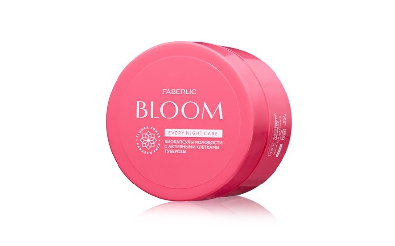 Всем привет, сегодня поговорим о ночном креме серии Bloom 45+ (артикул 0147). Немного об этой серии: Эта серия идет в красных, ярких, красивых, пластмассовых баночках, смотрится очень красиво на туалетном столике. И поднимает настроение. Защитной крышечки под основной крышкой нет, идет фольга. Приходит в коробочке. Баночки из пластмассы очень удобны, если упадет не разобьется. Bloom – инновационная серия антивозрастного ухода за кожей лица, созданная с использованием биокапсул с активными клетками цветов. Сохранить все полезные вещества и свойства растений удаётся с помощью специальных биотехнологий. Капсулы целенаправленно доставляют ценные компоненты точно в проблемные зоны и успешно решают задачи для каждого возраста. Основу линейки 45+ составляют биокапсулы с активными клетками туберозы, которая обладает ярко выраженным лифтинг-эффектом, возвращает коже нежность и свежесть, придавая притягательность и волшебное сияние. Крем для лица ночной Блум 45+ Результат: сокращение морщин, сти