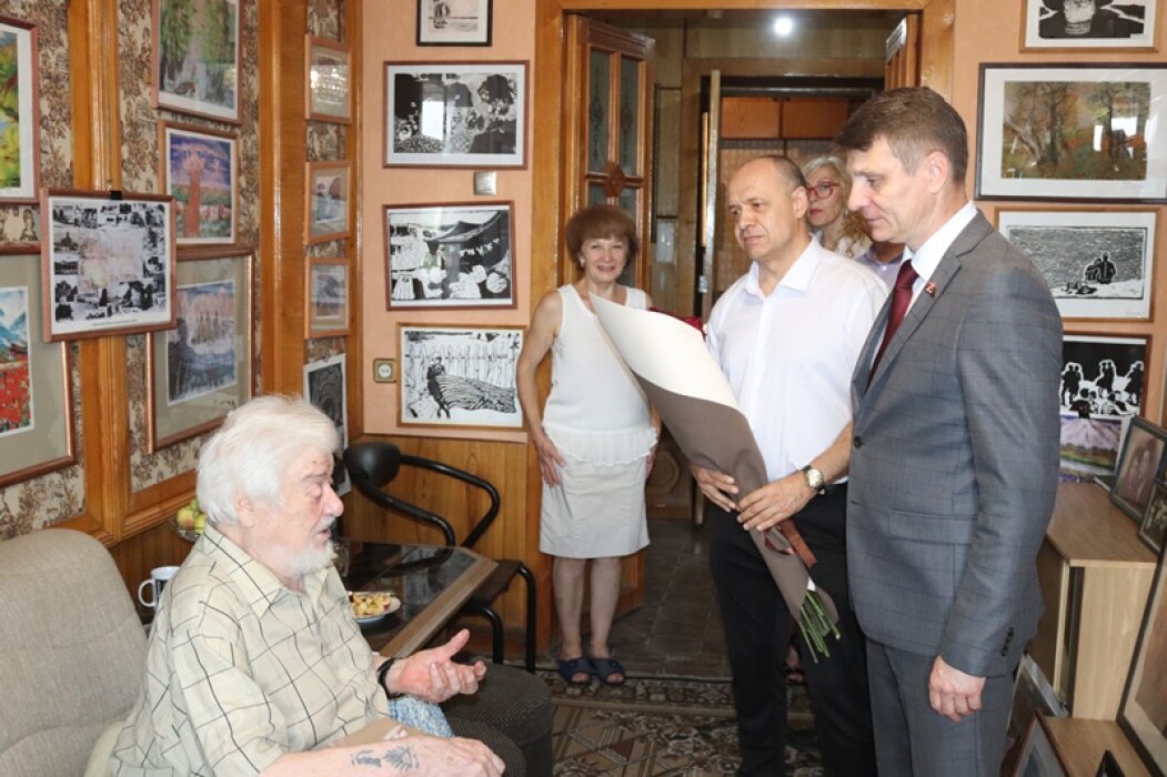 Сегодня известному шахтинцу, заслуженному художнику России Владимиру Даниловичу Дикому исполнилось 85 лет. С круглой датой его поздравили глава администрации города Шахты Андрей Ковалев, заместитель председателя городской Думы Константин Корнеев и председатель Общественной палаты города Шахты Александр Скориков. Андрей Ковалёв вручил имениннику памятный знак "85 лет Ростовской области". Владимир Данилович Дикий - член Союза художников России, Почетный гражданин города Шахты, родился 19 августа 1937года в Краснодарском крае. В 1963 году окончил художественное училище имени Грекова в Ростове-на-Дону, а в 1971 году - Львовский полиграфический институт имени Фёдорова. Творческие работы Владимира Дикого находятся в музеях Норильска, Южно-Сахалинска, Комсомольска-на-Амуре, Томска, Архангельска, Петрозаводска, Минска, Ростова-на-Дону, Таганрога, Азова, Цимлянска, Сальска и города Шахты, а также в частных коллекциях в Германии, Вьетнаме, Таиланде, Сингапуре, на Кубе. Владимир Дани