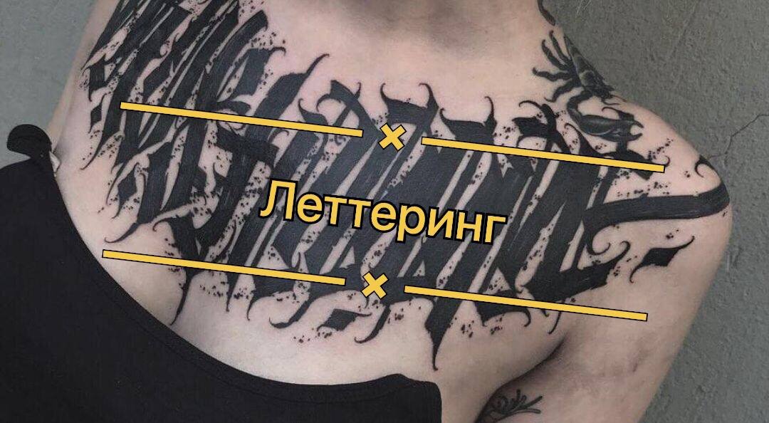 Тату в стиле леттеринг — это удивительное сочетание слова и формы. Каллиграфия, анатомия, мастерство тату мастера сливаются в сложных и замысловатых узорах, в которых не сразу угадывается текст, но всегда бросается в глаза впечатляющая картинка искусных линий. НЕМНОГО ИСТОРИИ С разнообразными надписями в татуировке знакомы практически все, кто когда бы то ни было обращал внимание на татуировки. Например, в 90-е годы ХХ века в России, именно надписи были по сути олицетворением татуировки. Из-под неизможденных творчеством рук тогдашних мастеров выходили стройные ряды «Veni Vidi Vici», «Per aspera ad astra» и другие замечательные фразы на почти канувшей в лету, но такой манящей своей изысканностью латыни. Альтернативой в то время были также изображения Иероглифов из китайского или японского языков, а иногда и те и другие вместе взятые, ведь никто в то время не знал наверняка, что значит тот или иной символ, отсюда и бесконечные мемы в интернете про «гороховый суп» на плечах весьма бруталь