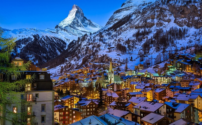 Швейцария – государство, расположенное в самом центре Европы, большая часть которого занята Альпийскими горами. По своим размерам эта страна намного меньше даже таких небольших российских областей, как Псковская или Костромская. Но при этом Швейцария является одной из самых развитых в экономическом отношении стран мира с очень высоким уровнем жизни. Швейцарская природа очень красивая и ,пожалуй, не имеет аналогов.На этом маленьком участке земной поверхности есть и величественные горы, и чарующие поля, и кристальные озера и много чего еще. Сегодня вы узнаете очень необычные и живописные места этой удивительной страны. Церматт Церматт – курортный городок, расположенный на самой границе с Италией. Сегодня он является одним из наиболее престижных и фешенебельных горнолыжных курортов мира. В окрестностях Церматта находится самая высокая гора Швейцарии Дюфур и знаменитый пирамидальный пик Маттерхорн. Особый колорит городку придаёт запрет на автомобильное движение