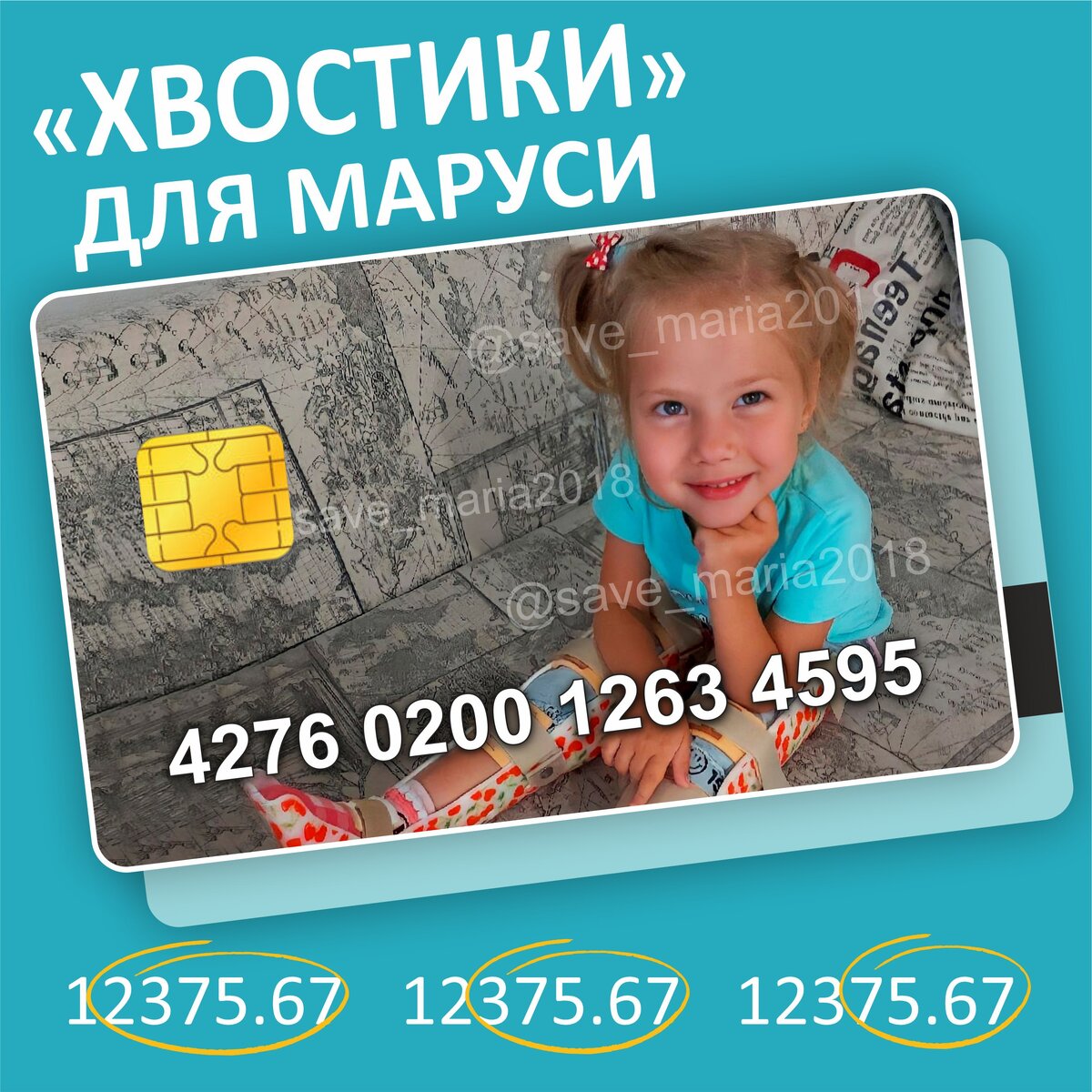 @save_maria2018 в Instagram. Ребят, по традиции каждую пятницу у нас акция "Хвостики для Маруси". Сегодня мы решили провести Вечерние Хвостики. Округлите сумму на карте в конце дня, а хвостик Марусе - 22,25 руб; 58 руб; 119 руб; 538,50 руб. Нам очень нужна 🙏 поддержка каждого и каждый рубль приблизит сбор на лечение Маруси к закрытию. Ну что проверим, сколько мы сможем собрать вечерних Хвостиков? Помогать легко 👇 ♨️ лайк ♨️ добавить себе в сториз ♨️ отправить репост своим друзьям и знакомым ♨️ Переведи посильную сумму 👧 Маша Яценко 4 года 💰Сумма сбора = 121 000 000 руб 🆘Собрано - 72 069 365 руб 🔴 Реквизиты родителей👇 💳Сбербанк: 4276 0200 1263 4595 💳Альфа-Банк: 5559 4937 1275 6791 Мобильный банк: 8 902 999 99 84 Получатель: Людмила Ивановна П.(мама) (Liudmila Panasenko) 💳Тинькофф: 5536 9138 2218 6397 Получатель: Евгений Петрович Я. (папа) 📍Qiwi: 89029999984 ✴️ БФ Сбереги жизнь - отправь смс на номер 3443 слово Маруся сумма 5️00