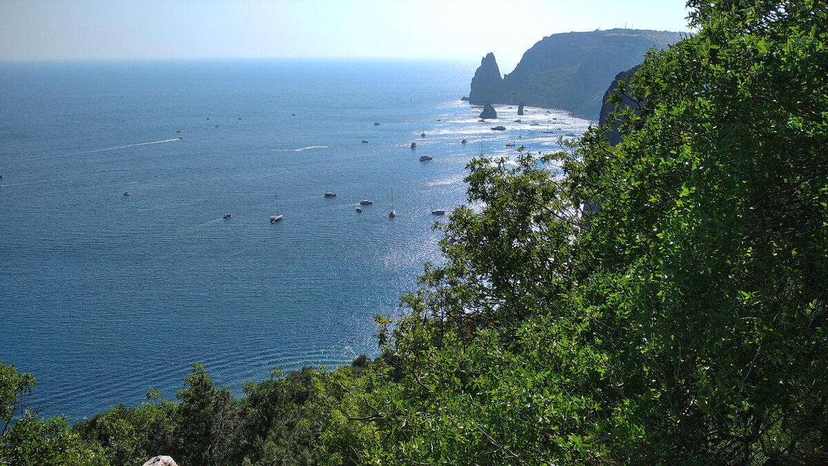Красота, конечно!! Мощь и великолепие! И мы сюда так стремились!!! Но... В общем, по порядку :) Дорога до... Оставив машину на техстанции, взяв с собой минимум вещей, пошли мы на городской транспорт. До ближайшей остановки автобуса нас подбросил автомеханик с ТС, спасибо ему. Дальше поехали на автобусе до места пересадки - "5-й км". Ехали не очень долго. А вот автобус до Фиолента пришлось поискать. Указателей с номерами рейсовых маршрутов - попробуй отыщи называется:(( Наконец, едем. До кольца проехали быстро. За ним - о! здравствуй, "пробка"! Рр-пшш, рр-пшш... Тронулись-встали, тронулись... Пока на горку заехали, ноги затекли. Автобус полный! Жара. Куда все едут?! Неужели все дачники? Или все отдыхающие - к морю рвутся?)) Автобус побежал резвее. Подъезжаем к нужной остановке. Я прошу водителя открыть переднюю дверь на выход. До остановки я оплатила проезд конкретно у него, потому что на терминале можно оплатить только за одного, а нас трое. Водила смотрит на меня, округляет глаза и
