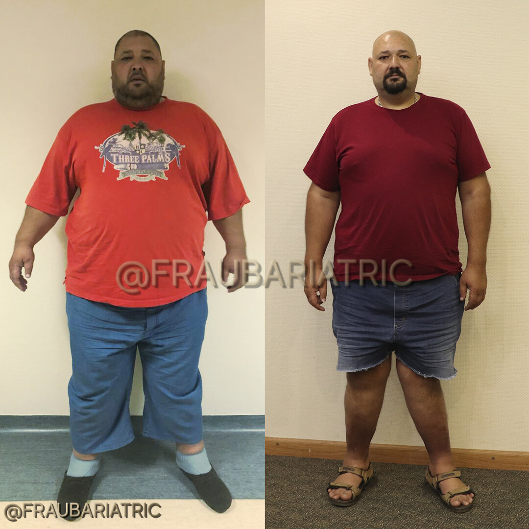 Еще один бариатрический пациент, Сергей. Он пришел в нашу клинику с весом 217 кг. Лишний вес сопровождался сильными болями в суставах и позвоночнике. Дошло до того, что Сергею уже было трудно выходить из дома. Попытки худеть диетами и максимальным ограничением потребляемой пищи привели к тяжелой форме авитаминоза. Буквально за 1 месяц у Сергея выпали все волосы.