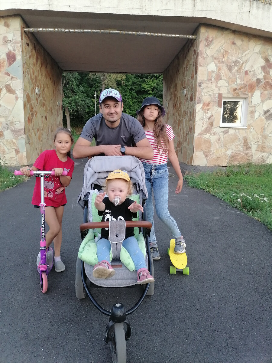 Наше любимое место прогулки, каждый занимается своим видом спорта. Я размялся на турниках, на брусьях. Диана катается на пенниборде. Рианка королева самоката. Лилианка уснула и гуляля с мамой. А я на своих стройных ножках брал подъёмы в гору. Какое бы не было дежурство после 32 часов работы, прогулка с моими принцессами быстро ставит на ноги. Всем здоровья, счастья, любви 🤲🤲🤲😇😇😇🧿🧿🧿.
