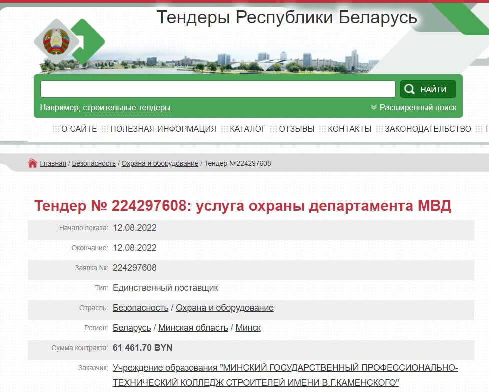 На сайте goszakaz.bt.su появились странные тендера, к примеру - №224297608 (услуга охраны департамента МВД) на сумму 61 461,70 BYN. Заказчиком , согласно тендера, является "МИНСКИЙ ГОСУДАРСТВЕННЫЙ ПРОФЕССИОНАЛЬНО-ТЕХНИЧЕСКИЙ КОЛЛЕДЖ СТРОИТЕЛЕЙ ИМЕНИ В.Г.КАМЕНСКОГО". Среди остальных тендеров, данного заказчика, можно заметить несколько абсолютно не свойственных как для учебного учреждения, а именно: "закупка спецодежды на 30 000 BYN, средства индивидуальной защиты" и т.д. и т.п. Странное совпадение, что за неделю до прибытия "Вагнер", начали появляться подобного рода тендера. Можно предположить, что Лукашенко проводит скрытое финансирование ЧОП "ГардСервис" прикрываясь государственными организациями, чтобы обеспечить личную армию необходимым снаряжением. А так как "ГардСервис" является ЧОП, Лукашенко не может в открытую выделять средства на её содержание.