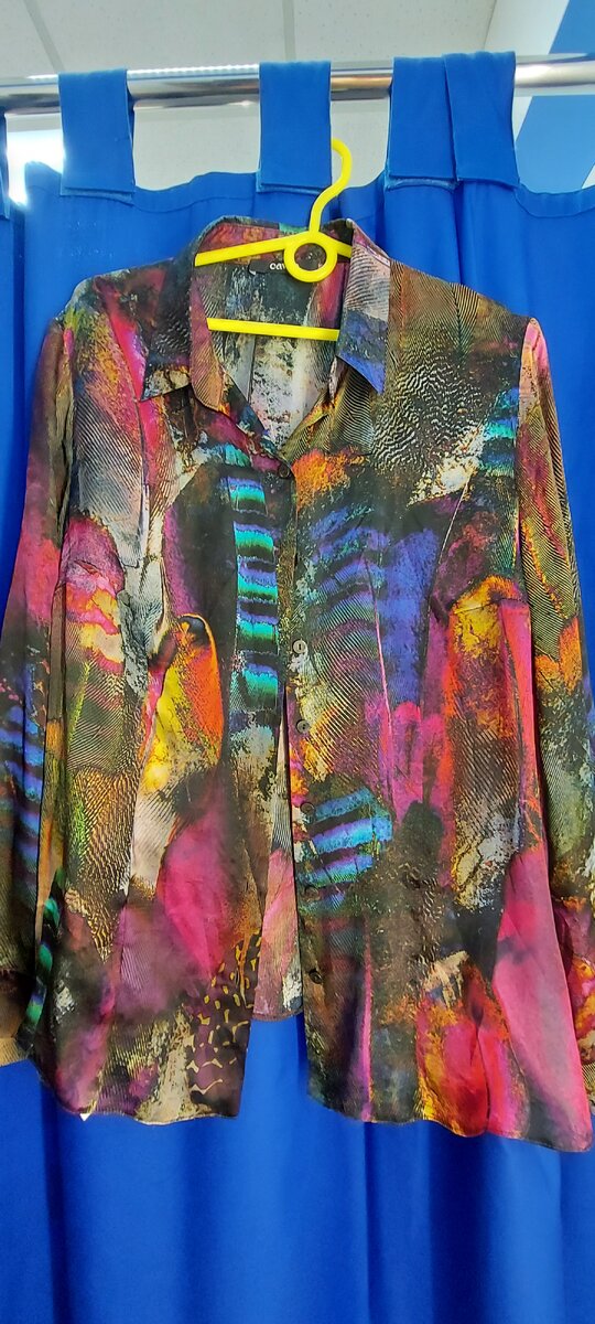 Привет) Давайте расскажу, что еще интересного нашла на скидке 10% в #секонд-хенд Севастополя. Как оказалось, ассортимент магазина очень хороший. Найти можно бесконечное колличество отличных, незатравленных вещей. Таких, которых нет больше в ближайшем окружении. Они раскрывают нашу индивидуальность. Одежда рассказывает много о нас. Кто мы, что из себя представляем... Одна статья с моими находками уже была. Скидку на нее дам в конце этой. Тончайшая, нежнейшая шёлковая блузка. Изумительная, "глубокая" расцветка. Такой принт подойдет к любому однотонному низу. Сочетать можно по разному... Влюбилась в нее с первого прикосновения..Такая она податливая) Была готова забрать ее с 10%скидкой, но на просвет нашла неидеальный , поехавший шов. Такая болезнь у шелка, нормальное явление. Тем более если носили ее в обтяжечку) А это уже полиэстер.Но.. Ох, какая я стала привередливая🤭Это полиэстер, но мне очень понравился этот топ. Блузка недорого бренда. Средняя цена около 3000 за вещь. Специали