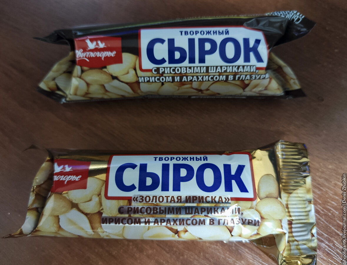 Суббота, а это значит, что я публикую пост про очередные вкусности. И сегодня у нас новые сырки марки «Свитлогорье». Два варианта продаются в наших магазинах. С шоколадной и карамельной глазурью. Состав огромен. А на светлой упаковке разглядеть его и вовсе невозможно. Творог тут нормальный (ну для цены сырка выше 40 рублей не может быть иначе). А вот глазурь и сами шарики много разных заменителей какао-масла и молочного жира содержат. Не вполне обычное сочетание творожного сырка и воздушного риса, который находится внутри, словно арахис в «Сникерсе». Только рис он мягкий и с творогом весьма странно сочетается. Шоколадная глазурь же, как и во всех сырках, кроме «Премиальных» — отвратительная. Горькая, жидковатая. Больше мне понравился вариант с карамельной глазурью. Тут правда и творог смешан с карамелью — вкус «Золотая ириска». С этим вкусом у «Свитлогорья» продаются ещё премиальные и обычные сырки. Видимо кому-то он там сильно понравился. В общем, если вы любите воздушный рис, как я,